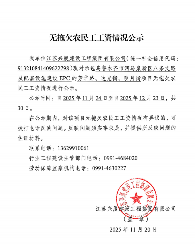 河马泉新区八条支路及配套设施建设项目-明月街、达光街、芳华路项目无欠薪公示