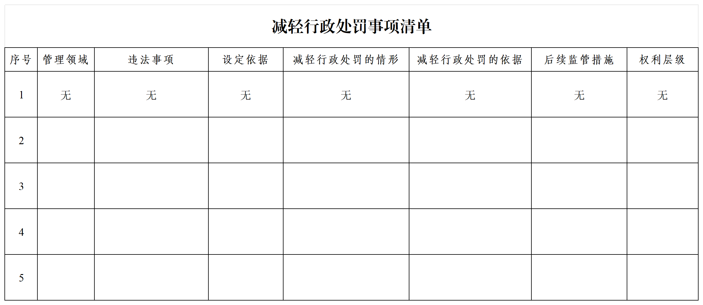 减轻行政处罚事项清单